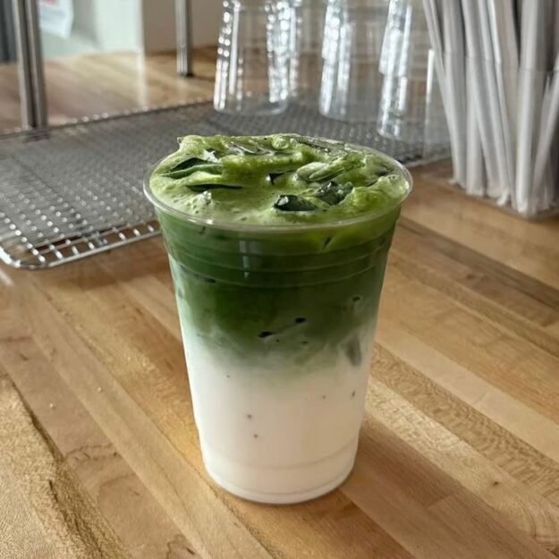 Matcha frío con leche y hielo. Refrescante, suave y con un toque natural.