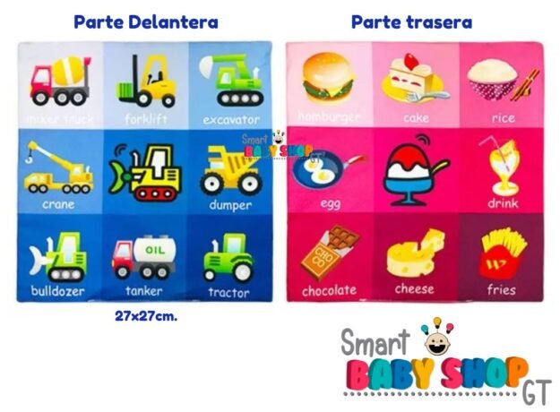 Manta de doble cara, con colores intensos, cruje al tacto. mide 27x27cm
