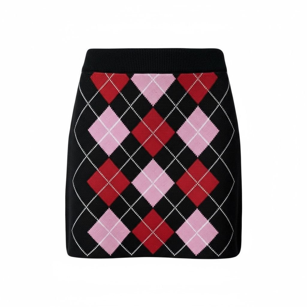 Cuenta con un llamativo estampado de rombos en tonos rosado y rojo, presente tanto en la parte delantera como en la trasera, aportando un estilo único y lleno de personalidad. Aunque es talla S, su tela y corte permiten que también pueda adaptarse a una talla M.